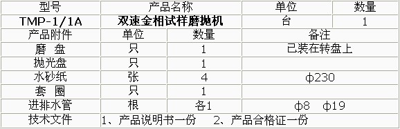 產(chǎn)品概述: TMP-1單盤雙速金相試樣磨拋機(jī) •澳大利亞科學(xué)家smeuls提出凡是用固定磨料(如砂輪片、砂輪和金剛石磨盤以及各種砂紙)制備試樣的過程稱為磨光,凡是使用松散磨料(如加入各種磨料微粉懸浮液、噴霧拋光劑、拋光膏)制備過程稱為拋光。 •單盤雙速磨拋機(jī)(拋盤、研磨盤)就能完成各種試樣的粗磨、細(xì)磨、干磨、濕磨、研磨及拋光等各道工序。 •該機(jī)的磨拋盤直徑均大于國(guó)內(nèi)同類產(chǎn)品,有效增加工作面20-30%有更多不同線速度的選擇。 •本機(jī)可選擇安裝PD-1型推移器,,能替代手工進(jìn)行磨拋各道工序。 TMP-1A無(wú)級(jí)變速金相試樣磨拋機(jī) •變頻調(diào)速,試驗(yàn)范圍自行設(shè)定。 •只需調(diào)換磨盤或拋盤和選擇合適轉(zhuǎn)速即可粗磨、細(xì)磨、干磨、濕磨、研磨及拋光等各道工序。 •傳動(dòng)功率、磨拋盤直徑均大于國(guó)內(nèi)同類產(chǎn)品,,可增加有效工作面20-30%,,可適應(yīng)不同材料的制備要求。 •本機(jī)可選擇安裝PD-1型推移器,能替代手工進(jìn)行磨拋各道工序。 技術(shù)參數(shù):