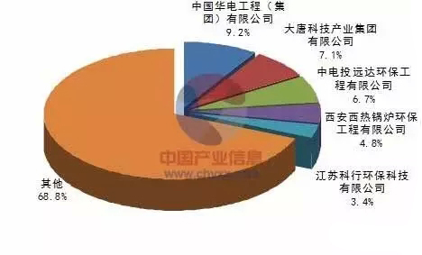 產(chǎn)業(yè)信息網(wǎng)發(fā)布的《2015-2020年中國火電脫硝市場運(yùn)行態(tài)勢及發(fā)展趨勢研究報(bào)告》顯示從截止2014年底的火電脫硝建設(shè)行業(yè)數(shù)據(jù)來看,行業(yè)具有很高的集中度。