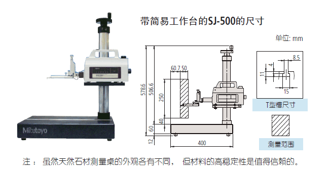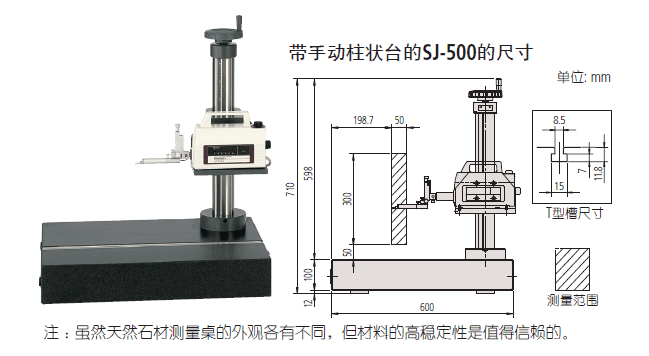 SJ-500同級領(lǐng)先的X軸直線度: 0.2μm/50mm高速直線運動。操縱桿控制下,手持式粗糙度測量儀,最高可達 20mm/s利用垂直調(diào)節(jié)鈕可平穩(wěn)定位