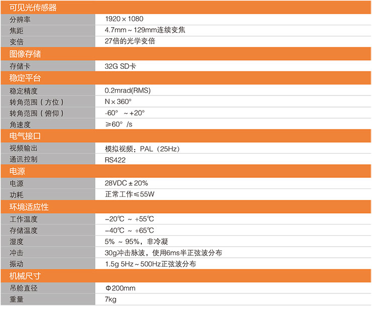 產(chǎn)品特點(diǎn) 體積小重量輕 直徑200mm,醫(yī)用紅外熱像儀的用途,重量7kg,大大降低飛機(jī)有效負(fù)荷 連續(xù)變焦高清可見光攝像機(jī) 配置27倍連續(xù)變焦1920×1080P的高清可見光攝像機(jī),成像質(zhì) 量高,可呈現(xiàn)高清場(chǎng)景,便于精確定位故障 跟蹤精度高穩(wěn)定性好 采用陀螺穩(wěn)定平臺(tái),可有效隔離運(yùn)動(dòng)載體的各種振動(dòng)、起伏、 顛簸,科研型紅外熱像儀,消除圖像的模糊和晃動(dòng) 視頻實(shí)時(shí)回傳 高空視頻可實(shí)時(shí)回傳至地面指揮中心,紅外熱像儀去哪買好,提高巡線效率 可拍照錄像 配置32G內(nèi)存卡,礦用紅外熱像儀,可對(duì)觀測(cè)點(diǎn)拍照錄像,便于地面對(duì)故障進(jìn)行分析